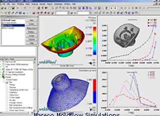 Computersimulaties van de stroming van de polymeersmelt in de matrijs zijn essentiële hulpmiddellen in het vooraf optimaliseren van product- en matrijsontwerp. Door de koeling en de locatie(s) van de aanspuiting als variabele te hanteren kunnen ook orientaties van o.a. glasvezels worden gemanipuleerd, hierdoor kan het voorkomen van scheluwtrekken (warpage) worden beïnvloed. Integratie van Moldflow in het ontwerpproces werkt zodoende kostenbesparend en reduceert uw time-to-market.
